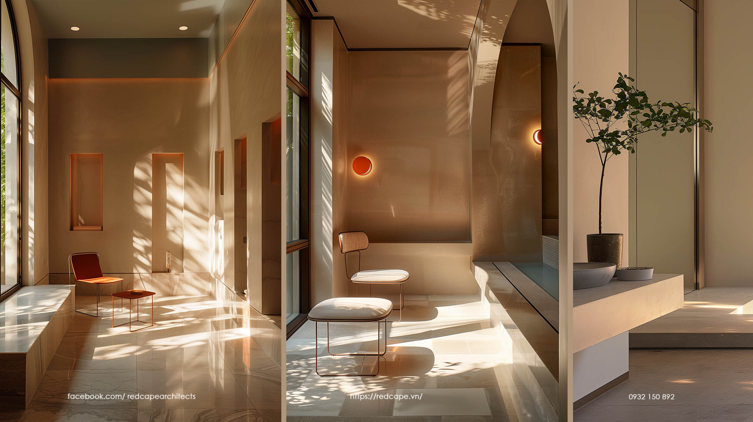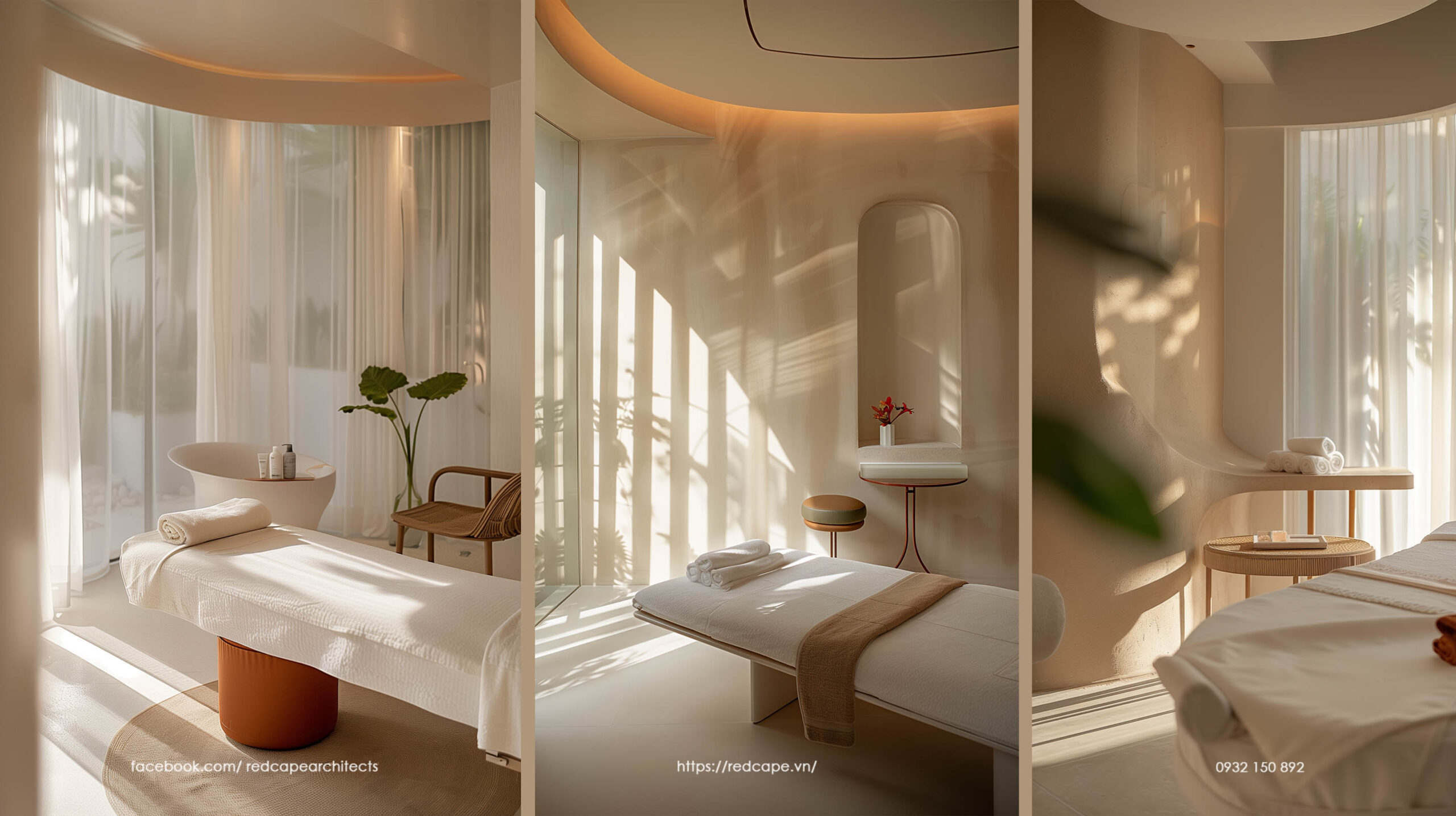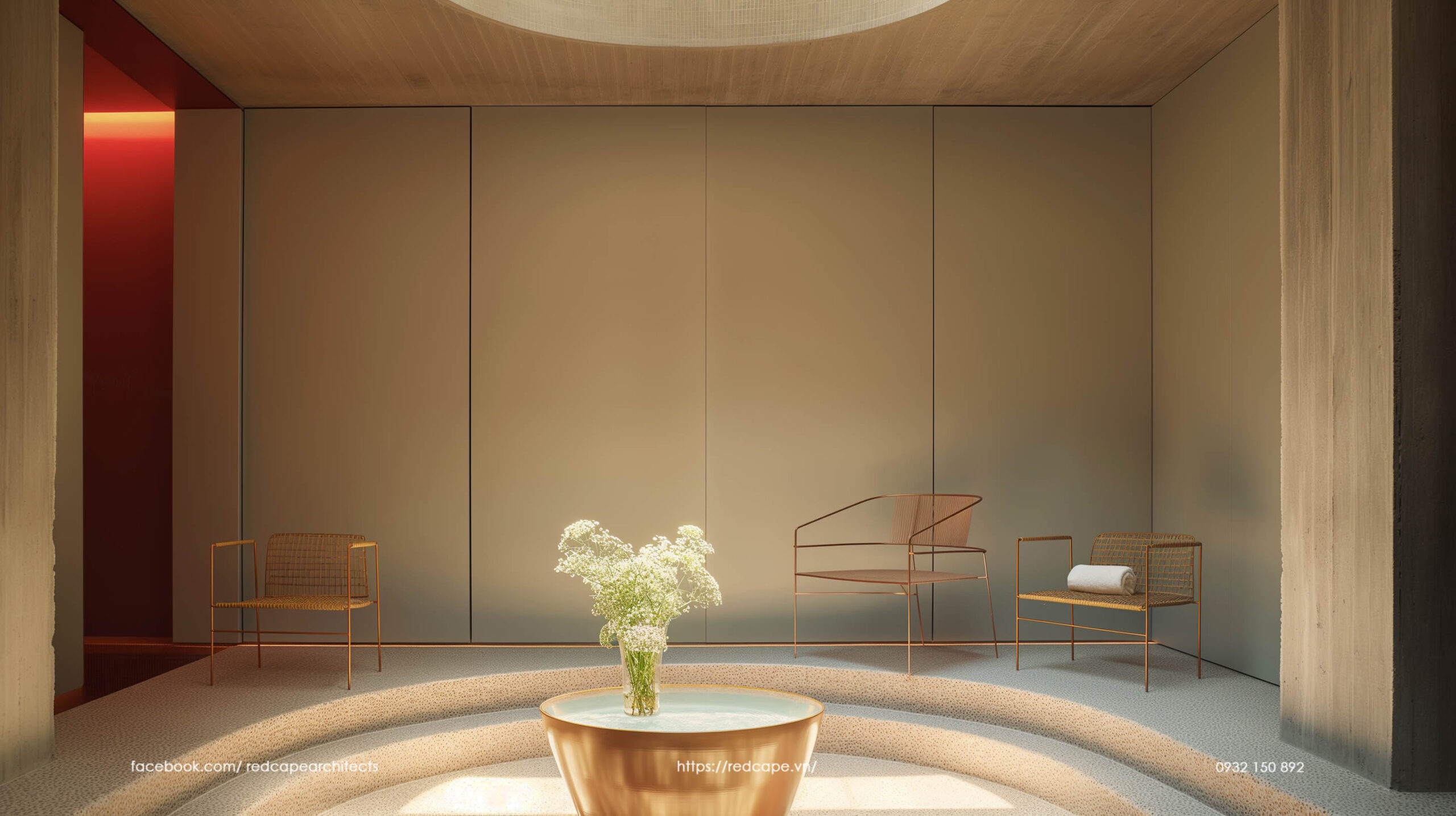 Ánh sáng tự nhiên, các chi tiết trang trí tinh giản, gam màu Mute nhẹ nhàng và những đường cong mềm mại là các yếu tố được ưu tiên sử dụng để tăng không khí ấm áp & thư thái. Thị giác – Thính giác – Khứu giác sẽ hoàn toàn được thư giãn tại Mute, nơi ánh nắng tự nhiên len lỏi qua những tán cây xanh, kết hợp với làn gió nhẹ nhàng & tiếng nước chảy róc rách. Mỗi góc nhỏ của Spa đều được chăm chút tỉ mỉ, để mỗi khoảnh khắc ở đây đều trở nên đáng nhớ.