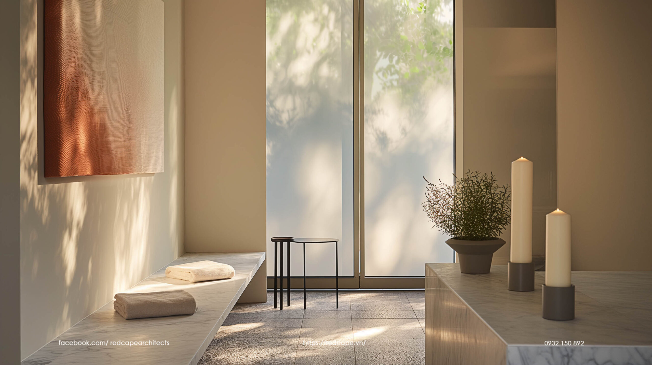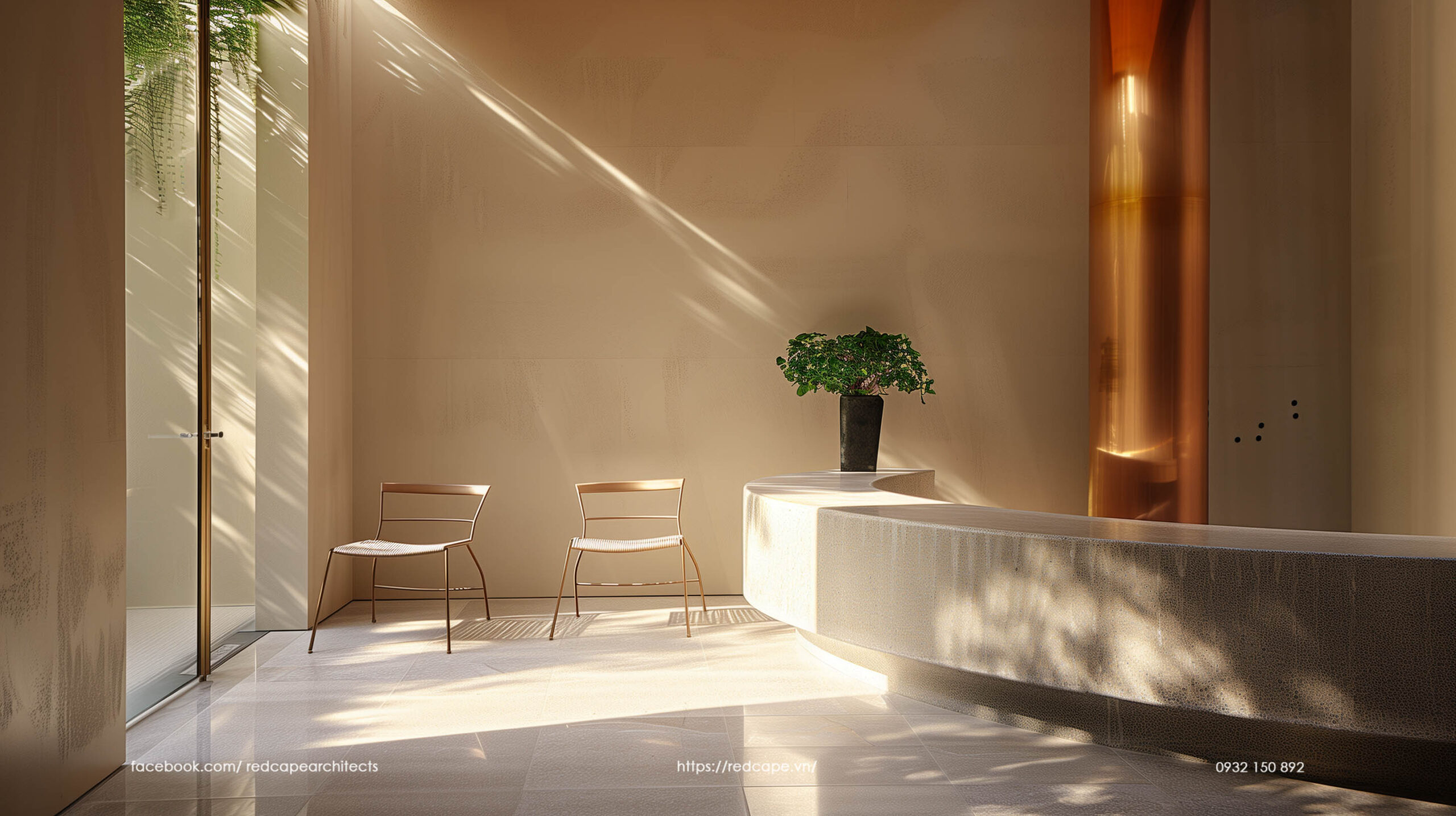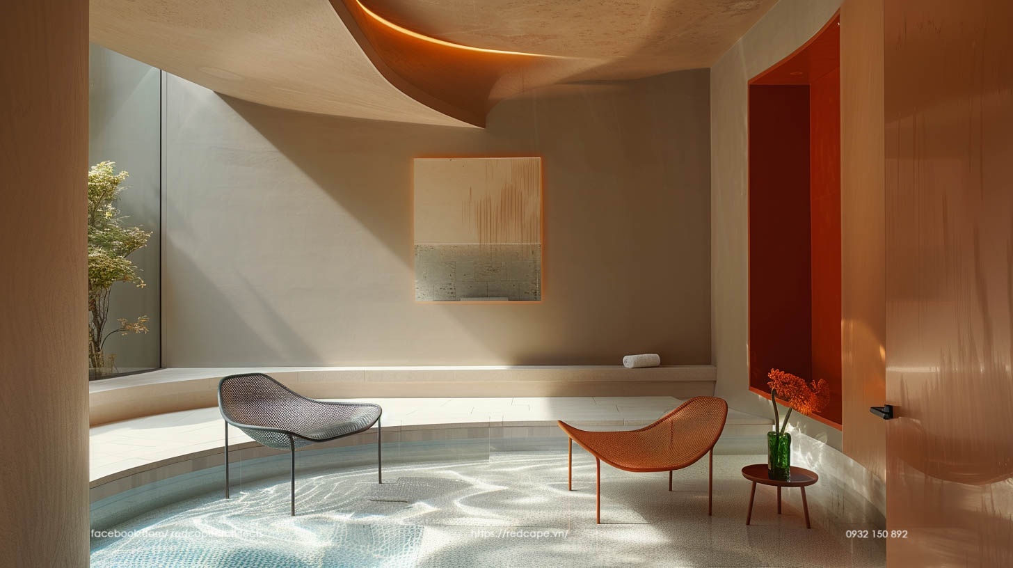 Ánh sáng tự nhiên, các chi tiết trang trí tinh giản, gam màu Mute nhẹ nhàng và những đường cong mềm mại là các yếu tố được ưu tiên sử dụng để tăng không khí ấm áp & thư thái. Thị giác – Thính giác – Khứu giác sẽ hoàn toàn được thư giãn tại Mute, nơi ánh nắng tự nhiên len lỏi qua những tán cây xanh, kết hợp với làn gió nhẹ nhàng & tiếng nước chảy róc rách. Mỗi góc nhỏ của Spa đều được chăm chút tỉ mỉ, để mỗi khoảnh khắc ở đây đều trở nên đáng nhớ.